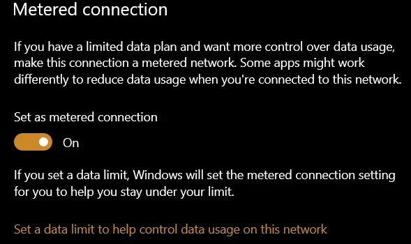 Beruntungnya, microsoft windows sudah menyediakan suatu pengaturan yang akan secara otomatis membatasi penggunaan kuota. Dengan mengaktifkan fitur ini, windows tidak akan melakukan update dan semua aplikasi yang membutuhkan internet akan otomatis membatasi kegiatannya di balik layar. Sayangnya, fitur ini hanya berlaku untuk aplikasi bawaan dari windows saja, seperti windows update, email, news dan lain sebagainya.