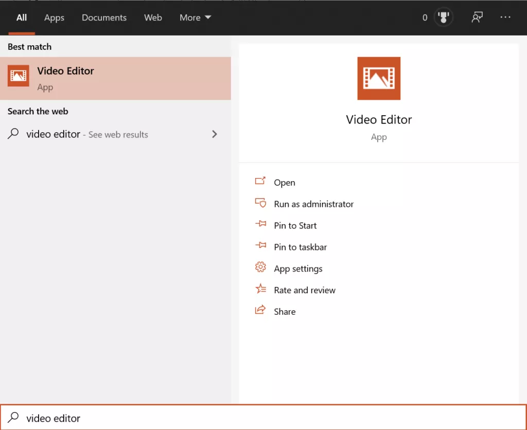 Pertama – tama kamu perlu untuk membuka aplikasi video editor. Cara untuk membukanya sangatlah gampang, kamu hanya perlu melakukan search di menu pencarian windows. Kalau aplikasi tersebut tidak ditemukan, berarti kamu perlu untuk melakukan update pada windows 10.