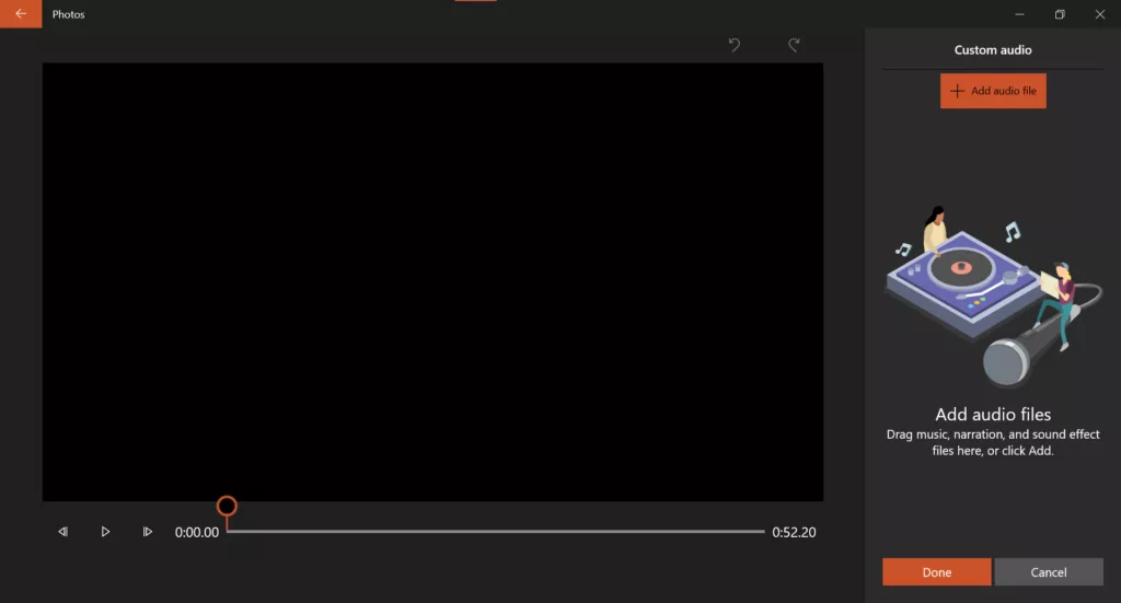Kalau musik bawaan menurutmu masih kurang, kamu bisa dengan mudah menambahkan musikmu sendiri dengan klik tombol custom audio di menu bagian atas.