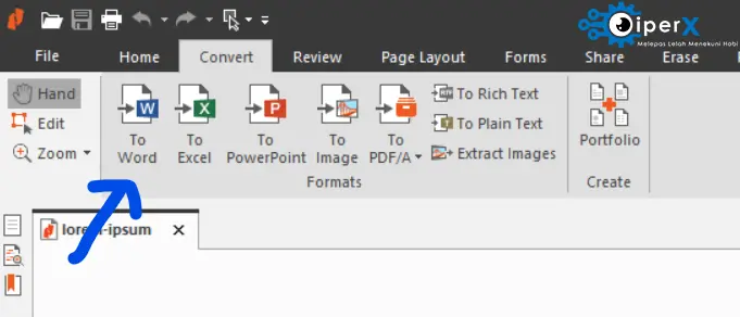 Selain menggunakan layanan online kamu bisa dengan mudah menghapus watermark pada file PDF dengan sedikit trik. Caranya adalah lakukan conversi file tersebut menjadi sebuah file word dengan ekstensi .docx. Kamu bisa menggunakan tool konversi PDF yang biasanya kamu gunakan, sebagai contoh kami menggunakan Nitro PDF untuk melakukan konversi. Untuk lebih jelasnya silahkan lihat ilustrasi dibawah.
